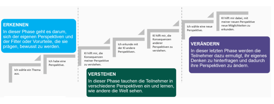 In der Erkennungsphase werden die Teilnehmer dazu angeregt, sich ihrer eigenen Perspektiven und der Filter oder Vorurteile, die diese prägen, bewusst zu werden.